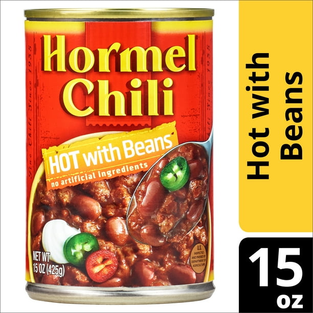 HORMEL Chili, No Beans, No Artificial Ingredients, 15 oz - Walmart… The possibilities are endless! Our chili has 15 g of protein per serving and no artificial ingredients added. Contains one 15 oz. can of HORMEL Chili No Beans. HORMEL Chili makes an array of delicious chilis including with and without beans, less sodium, vegetarian, and with turkey, chicken or beef! No wonder it's the #1 Selling Chili in America.