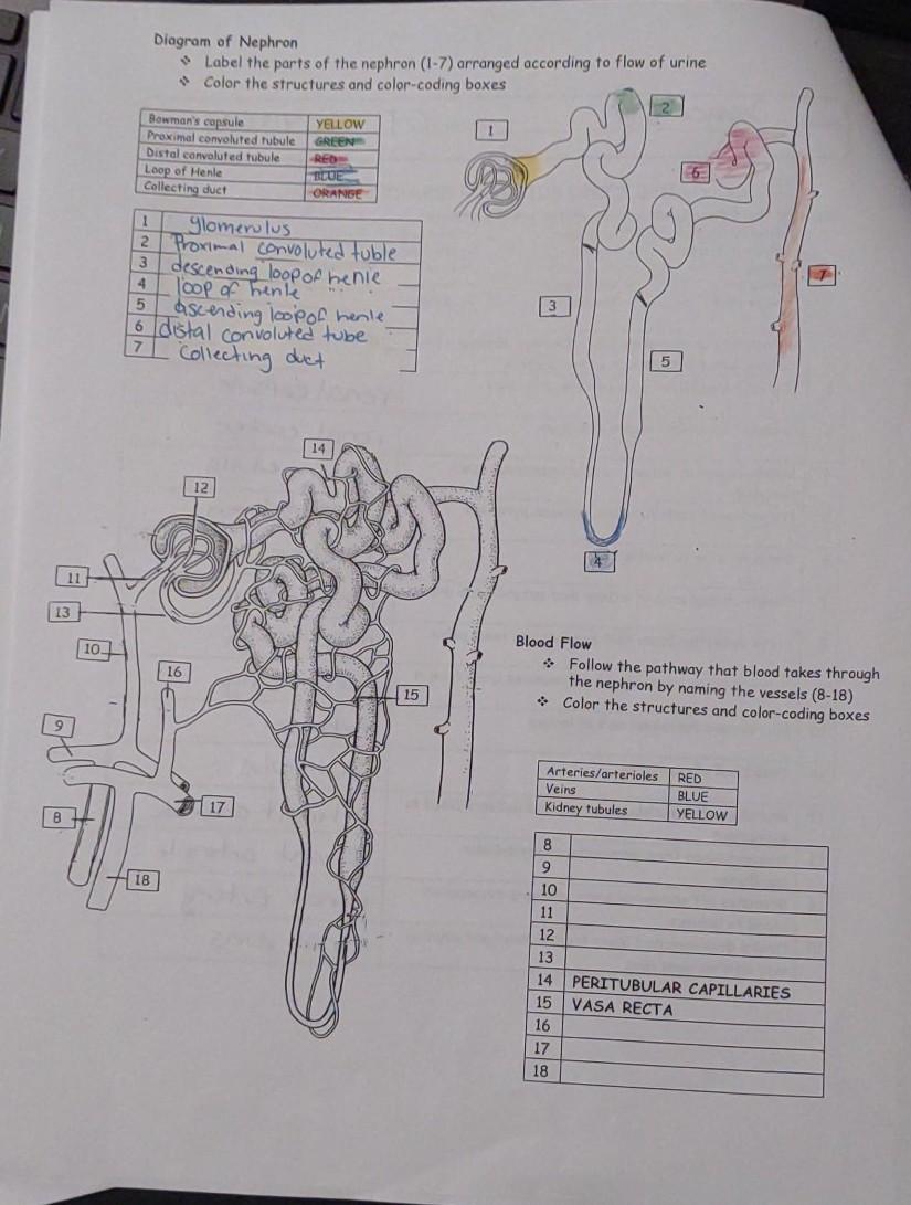 Color and Label the Nephron | Biology diagrams, Nursing school tips ... Practice labeling the nephron with this reinforcement activity. Students can also color the image to identify the major structures of the nephron: glomerulus, bowman's capsule, proximal and distal tubules, loop of henle, collecting duct and capillaries. This was designed to go with a larger unit on how the urinary system and kidneys help the body
