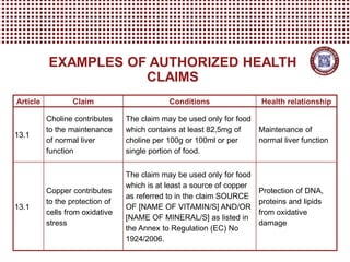 ABC's of Health Claims - WebMD Sugar alcohols and dental caries Fiber and cancer Folic acid and neural tube defects Fruits and vegetables and cancer Soluble fiber and coronary heart disease Sodium and hypertension Soy protein... 5 Understanding Food Labels and Health Claims - Maricopa Health Claims & Foods. To keep companies from making false claims, the FDA provides food manufacturers' regulations in putting labels on packages that promote health. There are three levels of health claims: A health claim is supported by scientific evidence. An example is "reduces heart disease." 19 popular nutrition claims (some are false!) - Leesa Klich Health Writer 19 popular nutrition claims (some are false!) There are so many conflicting nutrition claims out there that it is nothing short of confusing! The best diet is vegan/vegetarian We need 10,000 steps per day for good health We are 10x more microbe than human Coffee is healthy/dehydrates you/causes cancer Protein is good/bad for your bones 14 common food package claims - Mayo Clinic Health System 2. Fat-free or sugar-free Less than ½ gram of fat or sugar 3. Gluten-free, no gluten, free of gluten or without gluten Less than 20 parts per million of gluten 4. Good source of Provides at least 10% of the daily value of a particular vitamin or nutrient 5. Healthy Low fat Low saturated fat Less than 480 milligrams of sodium