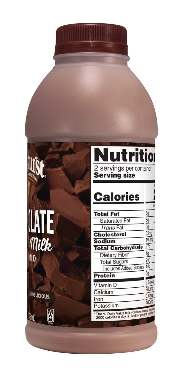 Oakhurst Chocolate Milk | Quart | Milk | Hannaford Oakhurst Chocolate Milk $2.59 $2.59/Per quart Add To List Nutrition Facts 4 servings per container Serving Size 236 ml Amount Per Serving Calories 200.0 % Daily Value* Total Fat 8.00g 12% Saturated Fat 4.50g 23% Trans Fat 0.00g 0% Cholesterol 25.00mg 8% Sodium 180.00mg 8% Total Carbohydrate 26.00g 9% Dietary Fiber 1.00g 4% Sugars 25.00g 0% Oakhurst Super Premium Whole Chocolate Milk, 1 qt Nutrition Facts Nutrition. Dairy, Cheese & Eggs. Milk & Cream. Oakhurst Super Premium Whole Chocolate Milk, 1 qt. 102967. Oakhurst Super Premium Whole Chocolate Milk, 1 qt. LOG. View Diet Analysis Close. KEY FACTS (learn about health benefits or risks) Has low calorie density - this means that the amount of calories you are getting from an ounce is low (0.03 ... Oakhurst Premium Chocolate Milk, Half Gallon - Walmart.com Nutrition facts. Refer to the product label for full dietary information, which may be available as an alternative product image. About 8 Servings Per Container. Serving Size 236 mL. ... Oakhurst Premium Chocolate Milk. Smile more. And treat yourself to a glass of the real deal. Oakhurst Super Premium Chocolate Milk is the recipe for a richly ... Oakhurst 1% Low-Fat Chocolate Milk, 1 Pint - Walmart.com Nutrition facts. Refer to the product label for full dietary information, which may be available as an alternative product image. Amount per serving. Amount per serving % Daily Value* Total Fat: 4%: ... Oakhurst 1% Lowfat Chocolate Milk, everything?s better with chocolate. So take a moment to appreciate how good life can be with this rich ...
