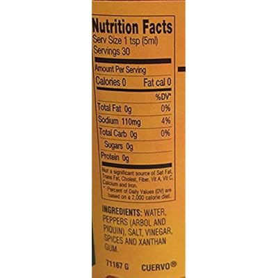 List of hot sauces - Wikipedia According to U.S. Nutrition Facts labels, hot sauces have no significant fat, carbohydrates, protein, or vitamins. Hot sauces ... Cholula Hot Sauce: Water, peppers (árbol and piquin), salt, vinegar, spices and xanthan gum (product label, 2010) 500-1,000: Mexico
