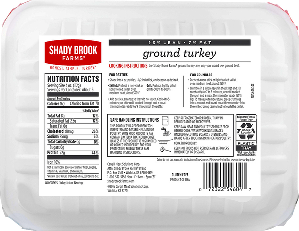 Lean Ground Beef 93% Lean, 1 lb Nutrition Facts & Calories NUTRITION LABEL (% of daily value based on 2000 calories per day) Nutrition Facts. Lean Ground Beef 93% Lean, 1 lb. Serving Size: small patty (3.5 oz, raw) (yield after cooking) (72g) * Amount Per Serving ; Calories: 117.4 cal : Calories from Fat: 37.8 cal % Daily Value : Total Fat: 4.2 g :