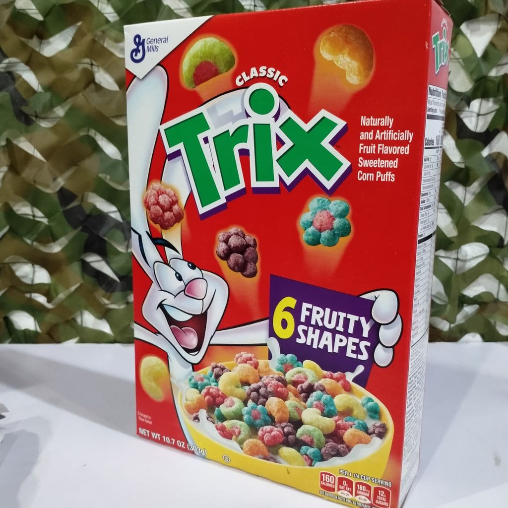 Trix | Flavored Corn Puff Cereal | General Mills Cereal Trix cereal is fortified with 12 vitamins & minerals. It's made from whole grain and is a good source of calcium. Its fruity flavor is a favorite with kids. Is Trix Cereal Healthy? Ingredients & Nutrition Facts 2023 A standard 419g box of Trix normally contains 13 servings. One cup (32 grams) of Trix contains: Calories – 122.6 Total fat – 1.3 grams Saturated fat – 0.2 grams Polyunsaturated fat – 0.4 grams Monounsaturated fat – 0.6 grams Carbohydrates – 27.4 grams Net carbs – 26 grams Fiber – 1.6 grams/6% DV Sugar – 10.2 grams Protein – 1.6 grams