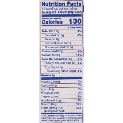Wonder bread nutrition facts label