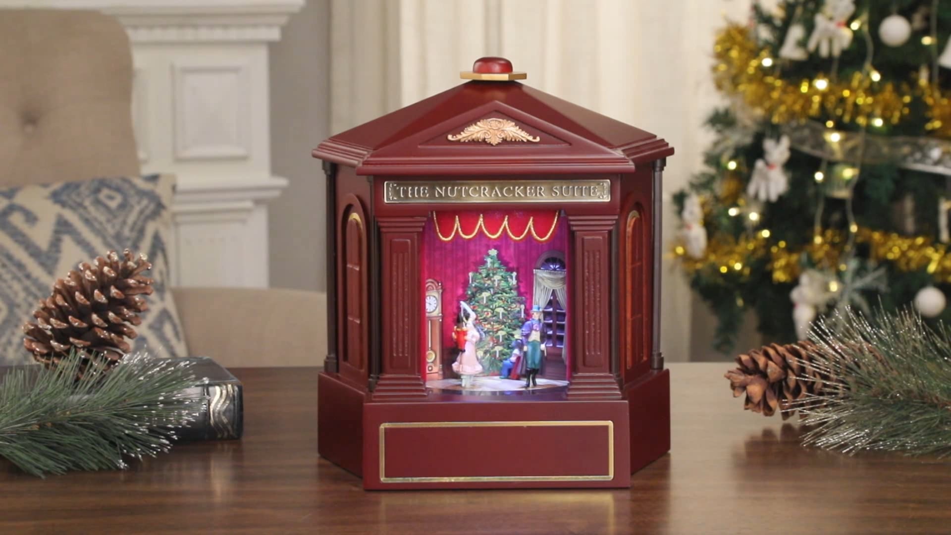 Nutcracker Ballet Music Box | Grandin Road Our Nutcracker Ballet Music Box possesses all the magic of the beloved musical complete with scene changes and score and fits on a table. This holiday musical display is the next best thing to orchestra seats. Just press a button, and the curtain opens to reveal an animated scene of colorful dancing figures accompanied by the original Tchaikovsky compositions The curtain closes automatically ...